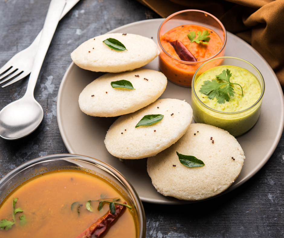 Idli are healthy steamed rice cakes that are soft and spongy. The batter is made primarily of fermented black lentils and rice, and when poured into molds and steamed, it turns into small fluffy cakes. This breakfast dish is fat-free, saturated-fat-free, and cholesterol-free, allowing you to start your day off right.