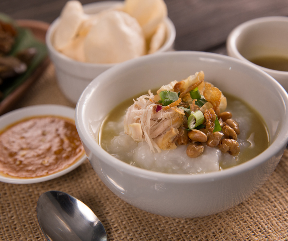 Porridge can strengthen your immune system and help with digestion. Garnished with green spring onions, fried shallots, braised peanuts, this wonderful meal can be served with chicken, seafood, or just plain.
