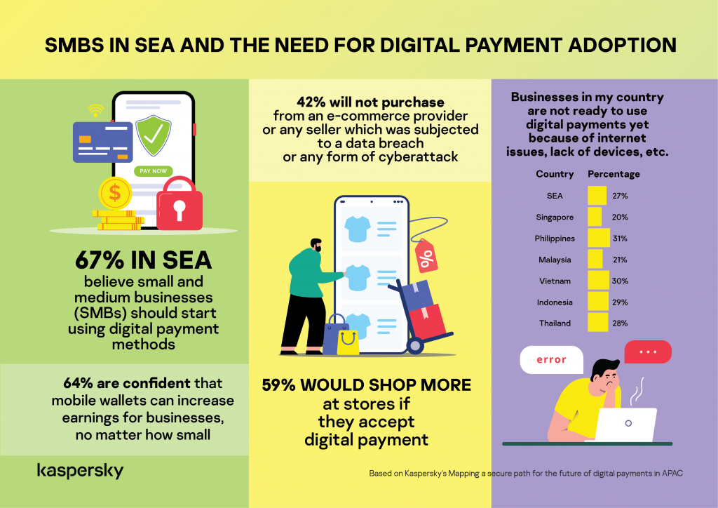 More than half of e-finance users (67%) in Southeast Asia (SEA) believe that small and medium businesses (SMBs) should begin using digital payments for financial transactions. This is one of the findings of a study on 1,618 people conducted by cybersecurity company Kaspersky in a bid to identify the attitude and challenges of digital payment users in the region.